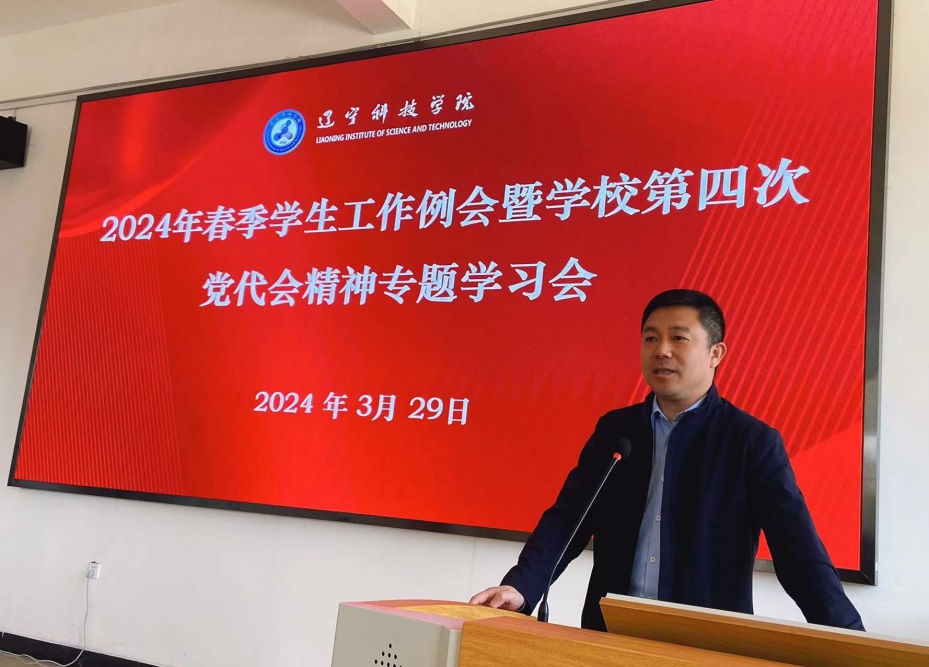 会上,学生工作处处长于红斌领学了学校第四次党代会《坚守办学初心使命 服务辽宁全面振兴 为建设特色鲜明、优势突出的区域高水平应用型大学而团结奋斗》工作报告,就学校未来五年的七方面重点工作做了详细解读。同时,围绕学校党代会精神,结合学生工作实际,对2024年学生工作要点进行了十方面的具体安排部署。