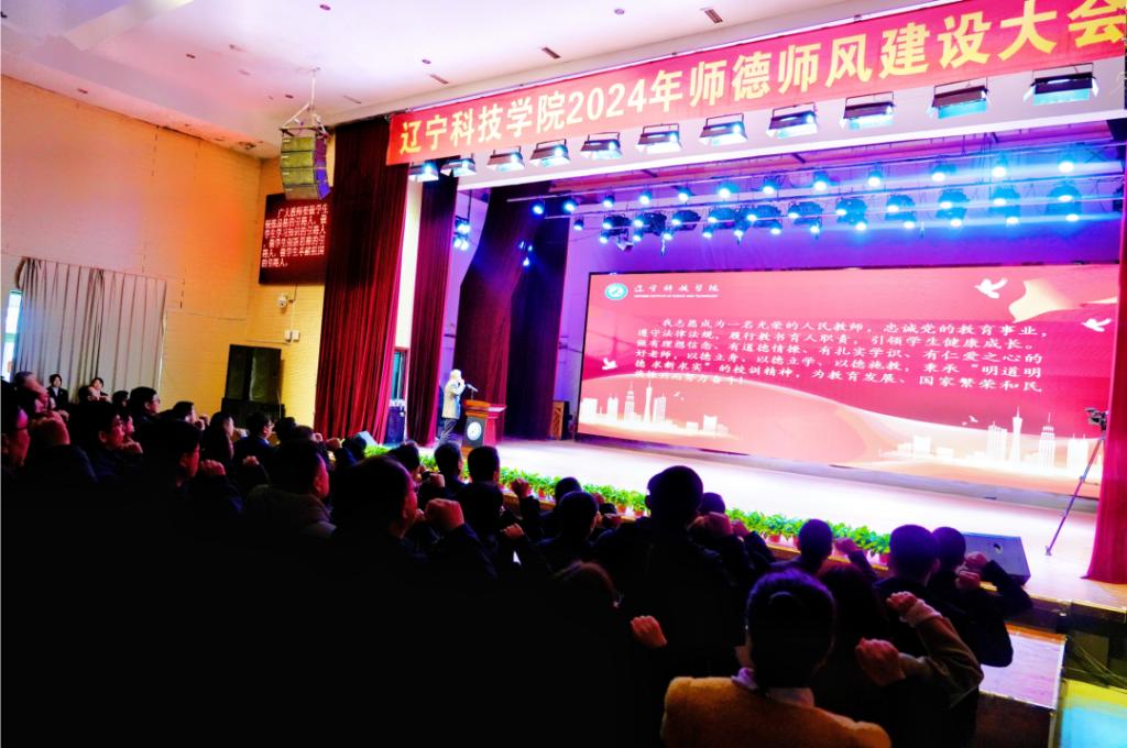 大会最后举行宣誓仪式。由党委教师工作部部长、人事处处长律德财同志领誓,全体参会人员举起右手,庄严宣誓。慷锵有力的誓言见证着一代代辽科人对教育事业的承诺,谱写了辽宁科技学院师德师风最美答卷。
