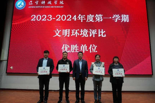 葛会奇为2023—2024年度第一学期文明环境评比优胜单位颁发奖状。