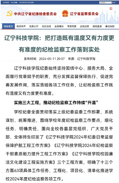 春花如锦,夏叶成帷。今年以来,辽宁科技学院纪委(监察专员办)认真贯彻落实习近平新时代中国特色社会主义思想,落实党委各项工作部署,紧紧围绕学校中心工作,服务大局,聚焦辽宁全面振兴新突破、学校第四次党代会7375奋斗目标、本科教育教学审核评估、高质量发展10456战略目标及党政工作要点等重点工作和任务目标,实施纪委日常监督保障护航工程、纪检监察干部素质能力提升工程、校园廉洁文化建设工程三大工程,开展校内巡察,以高质量监督护航学校高质量发展,打造既有温度、又有力度、更有准度的纪检监察工作,受到辽宁纪检监察网、辽宁高校党建等省级主流媒体报道关注,全方位、多角度传递辽科全面从严治党正能量,唱响辽科好声音,努力讲好辽科正风反腐故事,有力推动学校纪检监察工作辨识度、贡献率和影响力。