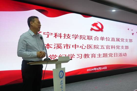 活动中,闫海军充分肯定了这次联合单位直属支部与中心医院五官科党支部共同举办的党日活动。他指出,党纪学习教育对每一名党员来说,是对自身的一种提升,是对党员干部切实增强纪律意识、锤炼坚强党性、推动干事创业的一种教育和引导。希望通过这样的一次活动,可以为我校和中心医院搭建一种新的沟通方式。欢迎各位医生党员来校感受辽宁科技学院的钢铁精神、红色文化。同时,也希望学校的党员干部走进医院,感受担负着救死扶伤天职的医生的仁心和大爱,共同推动党纪学习教育取得实实在在的成效。
