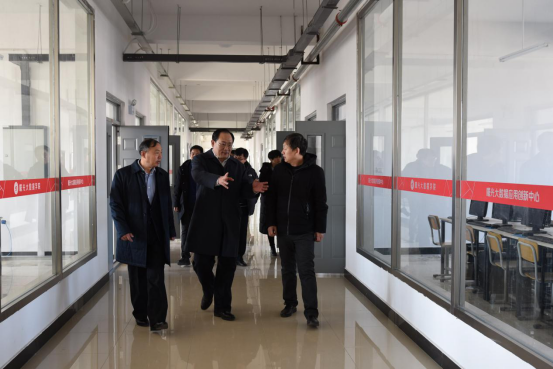2月14日,党委书记马壮、校长陈保东、副校长吴国玺、副校长孙国军等校领导和相关单位负责同志,来到我校新落成的智慧制造实验实训综合楼,对曙光大数据学院、新松机器人学院、招生与就业处、工程实训中心、创新创业学院的搬迁工作和设备安装调试工作进行实地检查指导。