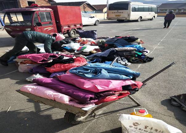 图为捐赠的衣物领取现场