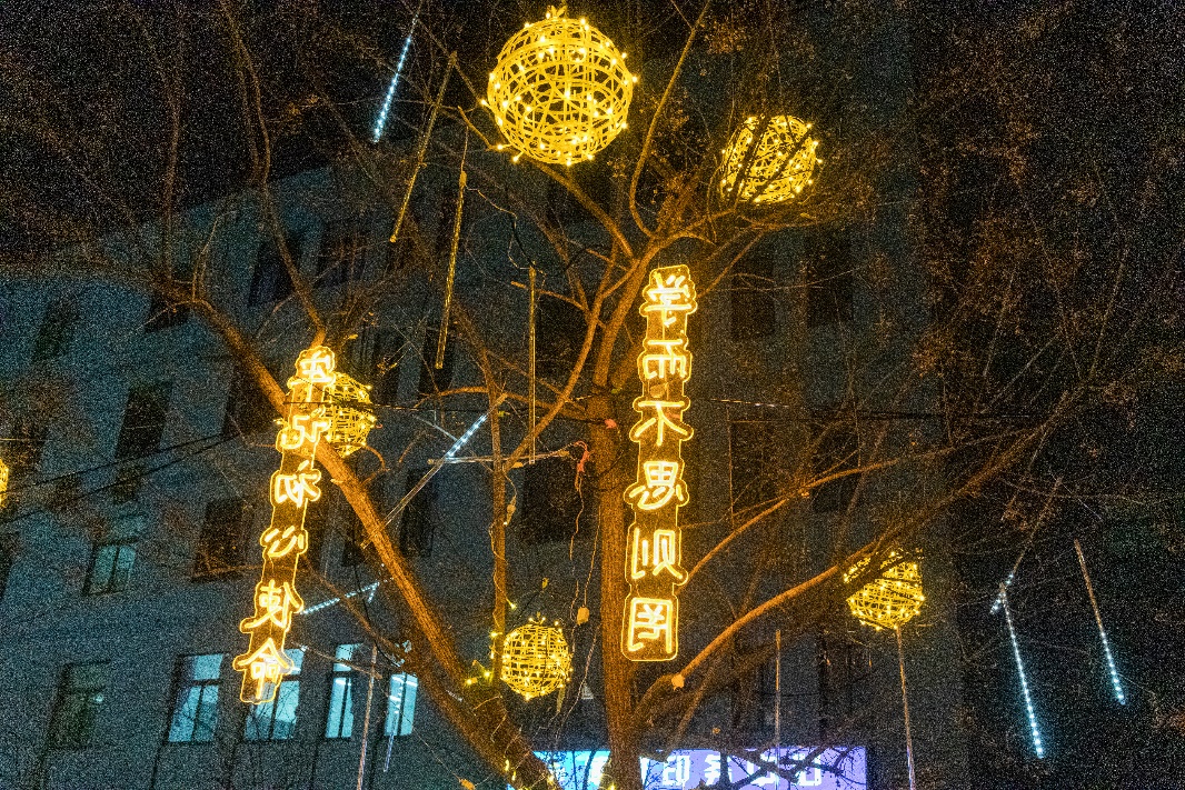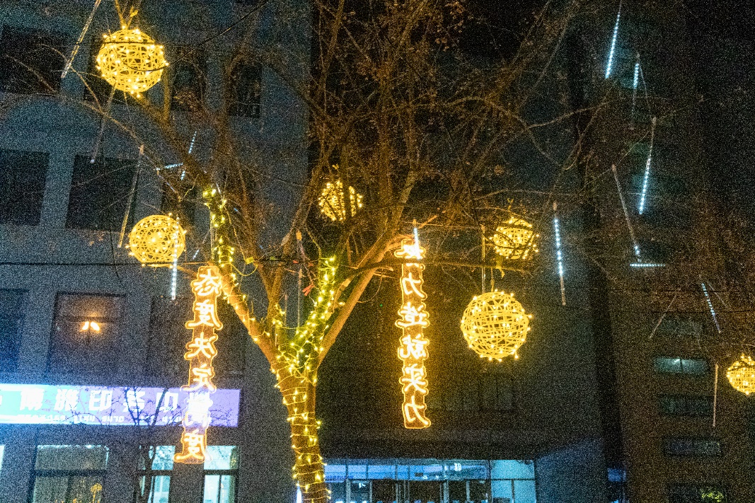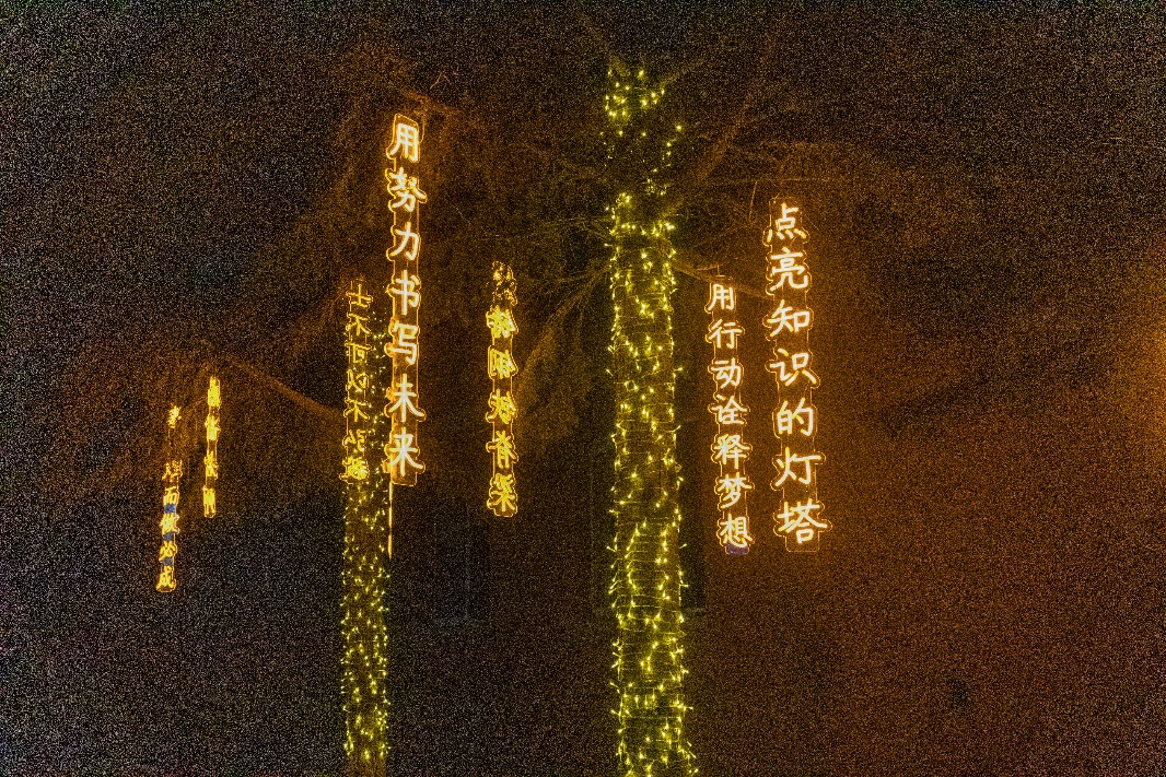 文化氛围,精神滋养。夜幕笼罩下的校园三环路上,一棵棵苍翠的树木上,文化灯牌如同璀璨的星辰,点缀其间。它们不仅以绝美之姿妆点了校园的夜空,更犹如文化的使者,将校园的深厚底蕴与精神追求,以最为婉约而有力的方式,向每一位驻足的师生娓娓道来。