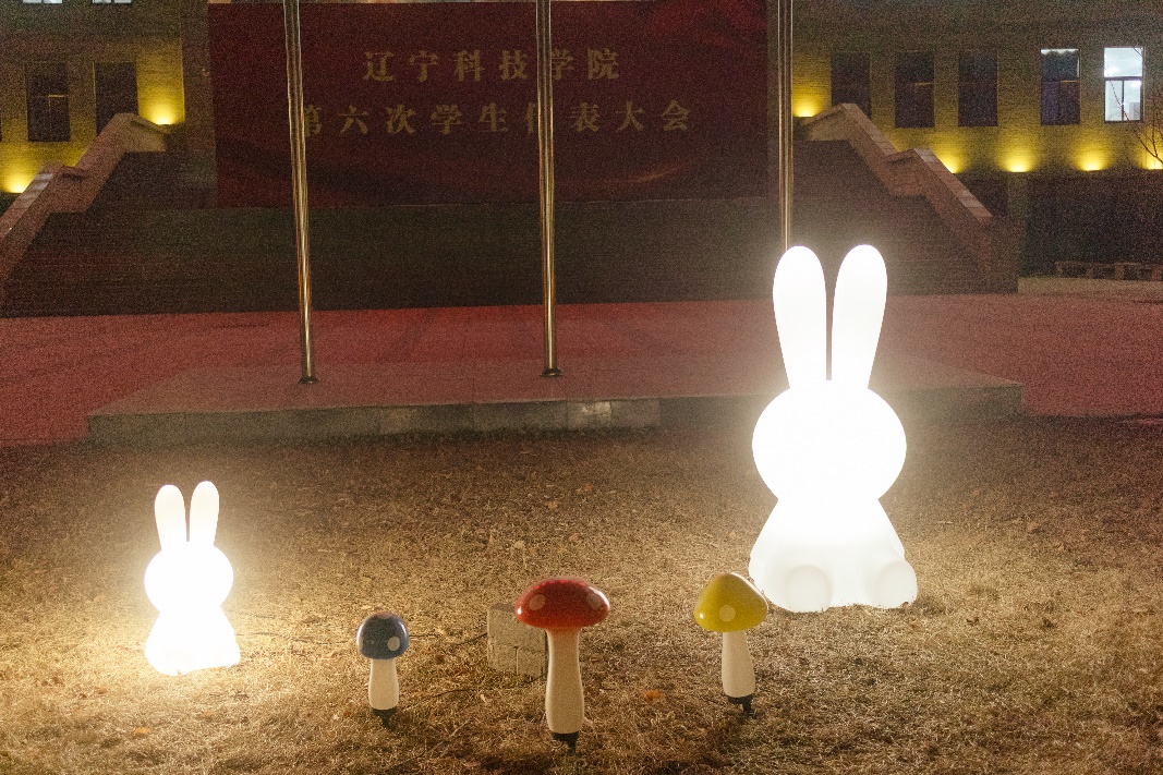 书香环抱,玉兔相伴。图书馆前,新增的玉兔落地灯以其独特的造型和柔和的光芒,将草坪装点得如同童话世界中的仙境,静静地守护着这片知识的殿堂,让每一位读者在夜幕降临之时,依然能够感受到书香的温暖与知识的魅力。