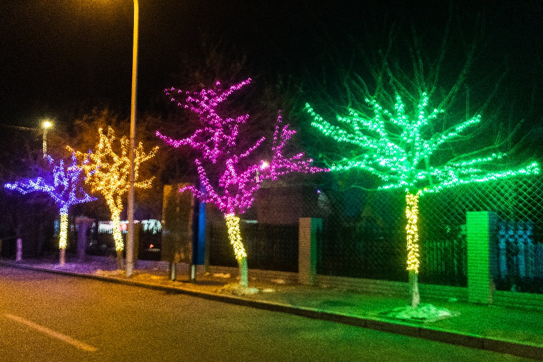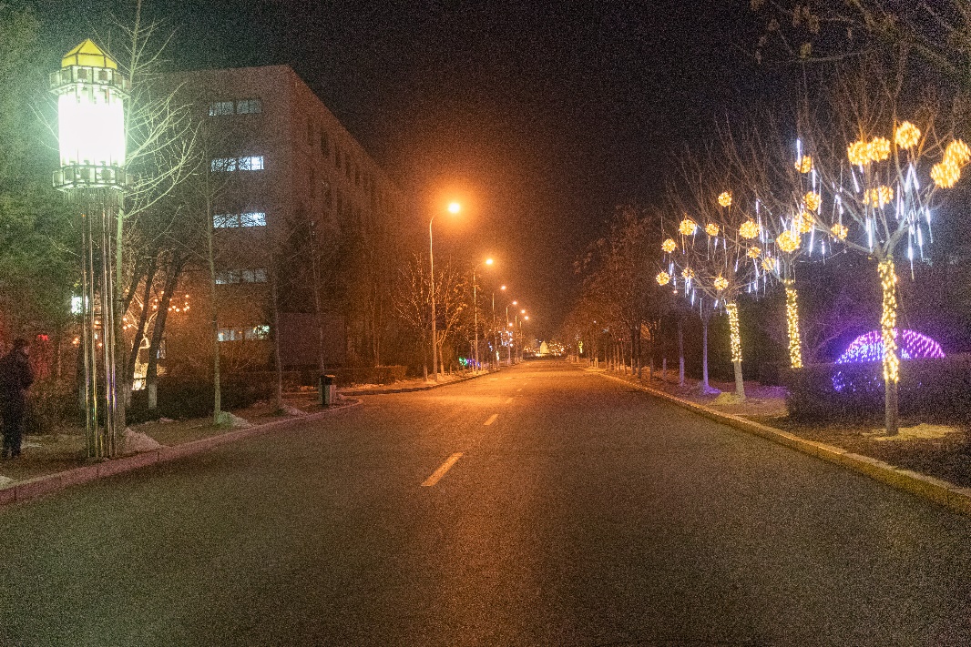 彩灯闪烁,点亮绿色梦想。校园夜色中,树木与植被被赋予了全新的生命——通过巧妙地配置彩色灯光,包括绚丽变幻的灯光、耀眼夺目的射灯、承载文化深意的标识灯,以及彩球、灯笼等别具一格的LED照明设备,校园的每一个角落都在夜幕下焕发出独特的魅力。这些灯光装置,宛如夜空中的点点星辰,赋予了夜晚以如诗如画的景致。校园在灯光的映衬下显得生动而梦幻,为每一位师生带来了视觉与心灵的双重享受。