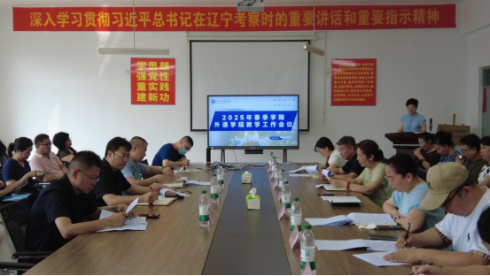 为进一步提升外语学院教学质量,总结春季学期的教学工作成果,明确下一步工作方向,7月9日,外语学院召开了2025年春季学期教学工作会议。校党委副书记宋明凯、组织部部长凌正魁、教务处副处长李晓亮参加了会议。