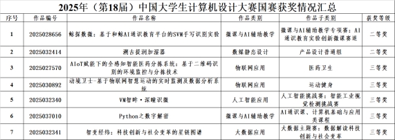 近日,2025年中国大学生计算机设计大赛圆满结束,辽宁科技学院推荐的7件国赛作品全部获奖。其中,2件作品获得国赛二等奖,5件作品获得国赛三等奖。