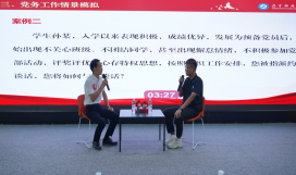 9月27日,在复赛和决赛现场,比赛氛围紧张热烈,参赛选手精神饱满、沉着应战。“工作方案策划”环节,选手们紧扣基层党建实际,现场构思策划,彰显出“围绕中心抓党建、抓好党建促发展”的大局意识;“主题党课展示”环节,选手们以小切口折射大主题,用鲜活案例和生动语言传递党的声音,引发现场观众强烈共鸣;在决赛的“党务工作情景模拟”环节中,面对学生演员的现场“刁难”,选手临场应变、思路清晰,充分展现了党务工作者过硬的业务能力和良好的职业素养,赢得评委与观众的一致认可。