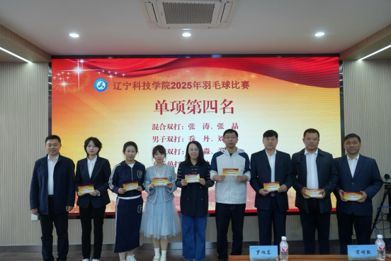 秋韵飞扬展风采,荣光绽放谱新篇。10月15日,辽宁科技学院2025年教职工羽毛球比赛、网上健步走活动、省级荣誉奖项颁奖仪式于数字化实训中心520室举行。学校党委副书记宋明凯、副校长罗旭东、副校长葛会奇出席颁奖仪式,仪式由工会主席刘宝主持,他代表工会向积极参与各项活动的教职工致以诚挚感谢。