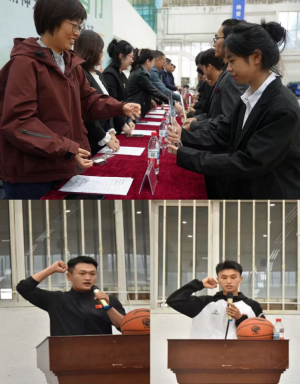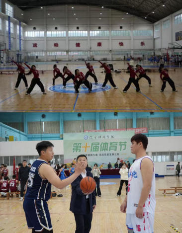 宣誓结束后,活力四射的啦啦操表演点燃全场,同学们用整齐划一的动作展现了团结向上的精神风貌。在热烈的氛围中,本届体育节的首场篮球赛正式开赛。葛会奇为篮球赛开球,运动员们的激烈角逐将现场气氛推向高潮。