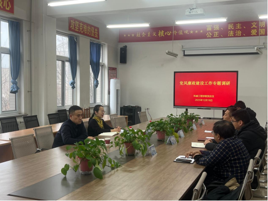 12月18日,校纪委书记关雅君深入机械工程学院开展党风廉政建设工作专题调研,机械工程学院领导班子成员、党支部书记等参加了调研。