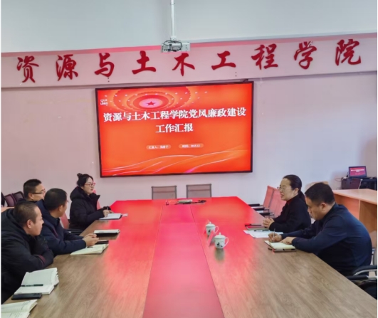 12月26日,校纪委书记关雅君深入资源与土木工程学院开展党风廉政建设工作专题调研,学院领导班子成员及教师代表参加了调研。