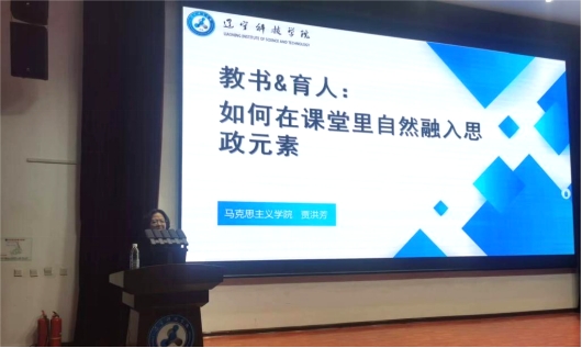 马克思主义学院副院长贾洪芳以“如何在课堂里自然融入思政元素”为题为新入职教师作专题培训