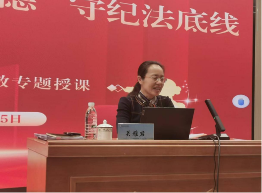 校纪委书记关雅君以“担育人使命 修高尚师德 守纪法底线”为题为新入职教师作专题培训