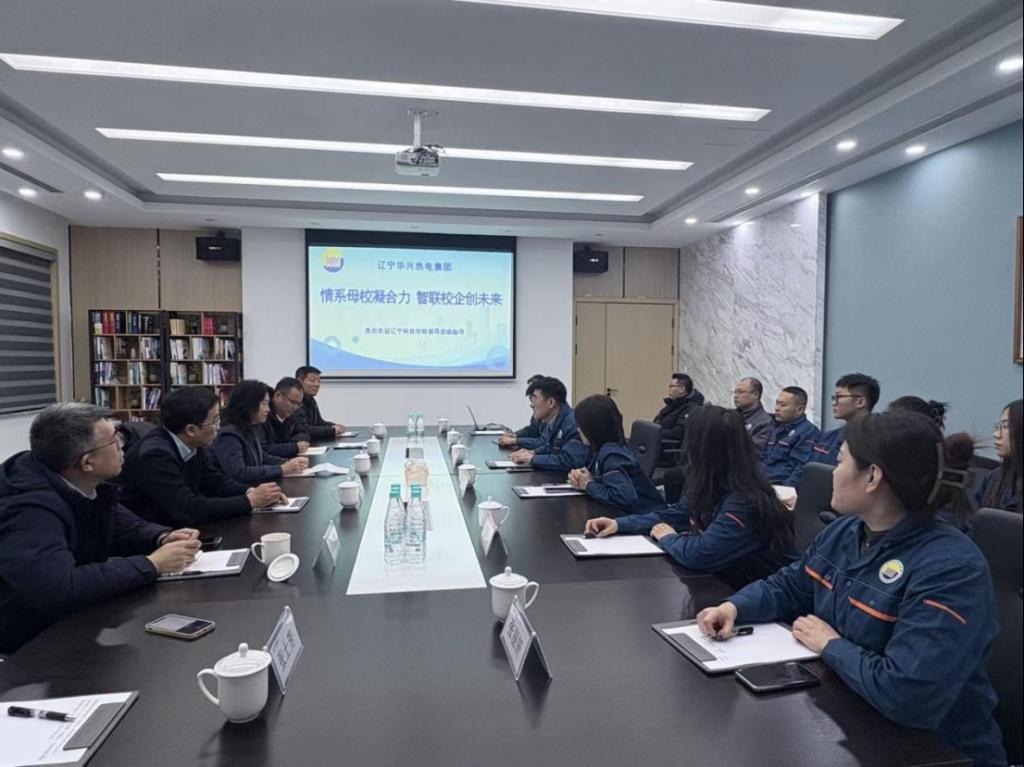 在辽宁华兴热电集团,校领导一行与集团董事长、钢8636班杰出校友袁海华先后走进太子河新城热源厂、职工职业技能培训基地、华亚热网公司实地调研。