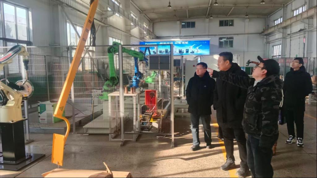 走访期间,闫海军一行深入生产车间、研发中心及实训场地,实地考察了工业机器人弧焊系统、自动化技术培训和学生宿舍等公司状况,详细了解企业在智能制造领域的技术创新成果、人才需求标准及未来发展规划。