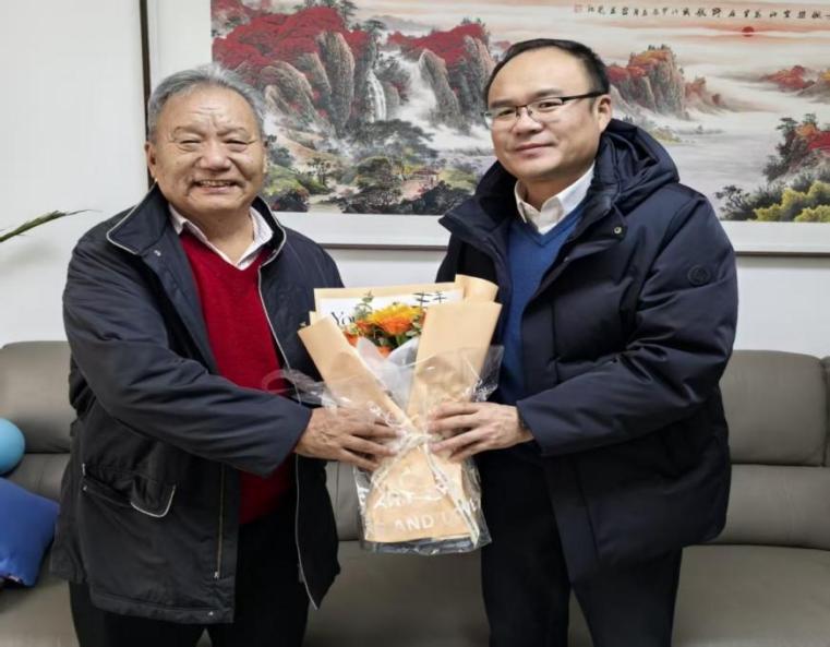 党委副书记宋明凯慰问退休老领导稂青山。宋明凯与稂青山老同志亲切交谈,详细询问他的身体状况和生活情况,深情回顾了他为学校发展作出的重要贡献,并介绍了学校近期的发展动态与取得的新成绩,希望他一如既往地关心支持学校工作,多提宝贵意见建议。