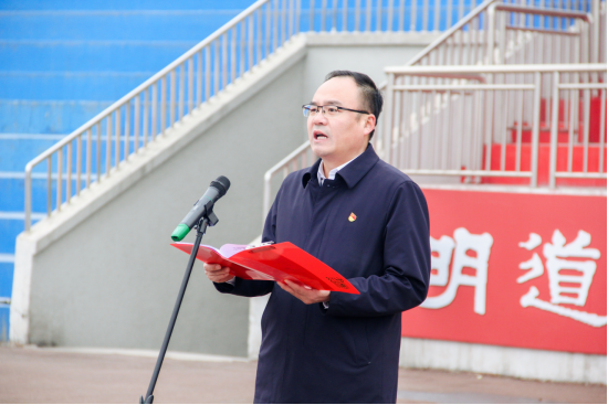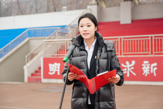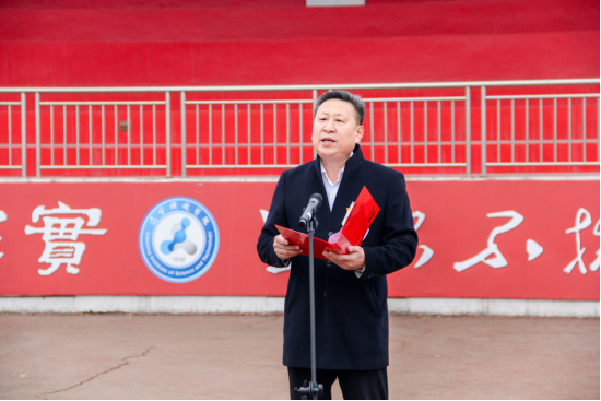 清晨7时30分,升旗仪式在肃穆的氛围中正式开始。国旗护卫队步伐铿锵、目光如炬,护送着五星红旗正步走向升旗台。伴随着雄壮的《义勇军进行曲》,鲜艳的五星红旗迎着朝阳冉冉升起,全体师生肃立注目,神情庄重,满怀对祖国的深情与敬意。学校党委副书记、校长臧喜民在“开学第一课”寄语中勉励学子,以英雄精神为灯塔,于时代坐标中锚定青春航向,于榜样光芒中汲取奋进力量,于精神传承中涵养高尚品格,于实践熔炉中锤炼过硬本领,以“明道明德,求新求实”的校训自勉,以“坚韧不拔,百炼成钢”的精神自励,胸怀报国之志,做有理想的追梦人;常存向善之心,做有温度的青年人;练就过硬本领,做有实力的实干者,将知识转化为能力,在时代大潮中书写无愧于韶华的青春答卷。