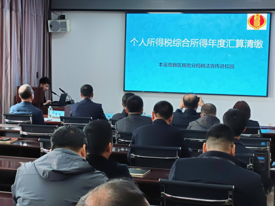 为深入贯彻落实树立和践行正确政绩观学习教育,践行“以师生为中心”的服务理念,助力学校高质量发展,3月26日,学校邀请国家税务总局本溪市税务局高新技术产业开发区税务分局局长王旭等一行五人走进校园,为老师们开展数电发票风险与规避及2025年度个人所得税综合所得汇算清缴专题宣讲活动。副校长葛会奇、各职能部门负责人,二级学院党总支书记、院长及财务处人员参加了会议。会议由财务处处长高松主持。