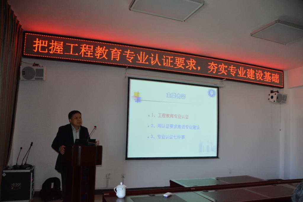 为加快应用型专业建设、全面推进工程教育专业认证工作,4月27日,教育部高等学校仪器类专业教学指导委员会主任、中国工程教育认证协会仪器类专业分委员会主任、天津大学精密仪器与光电子工程学院院长曾周末教授应邀莅临我校指导专业认证工作。