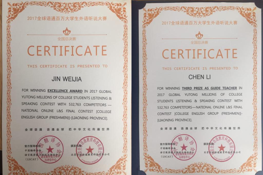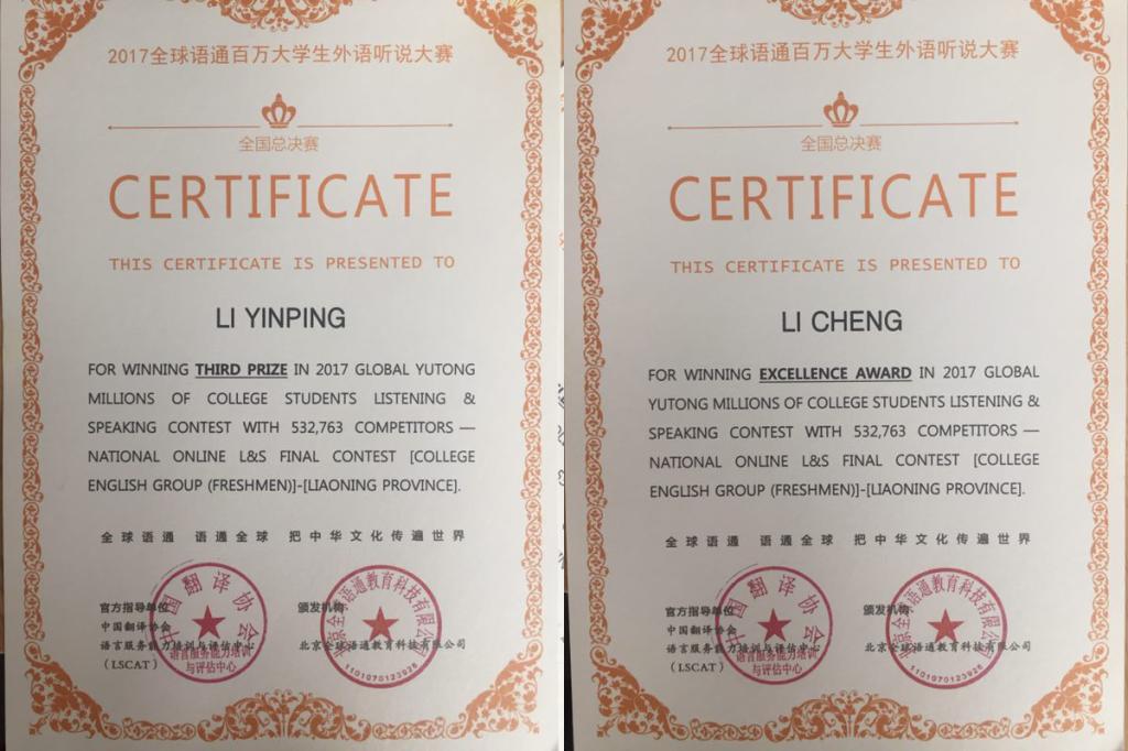 近日,“全球语通百万大学生外语听说大赛”全国网络听说总决赛落下帷幕,我校荣获最佳组织奖,管理学院李银平获辽宁省赛区三等奖;双百学院李诚和金维佳获辽宁省赛区优秀奖。