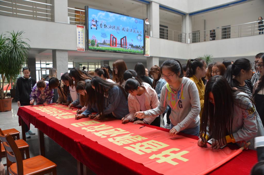 读书月启动仪式后,举行了唱响辽科新旋律大型签字活动,在场师生纷纷在写有“书香飘洒校园 阅读伴我成长”的横幅上留下自己的姓名,正式拉开了此次读书活动月的序幕。