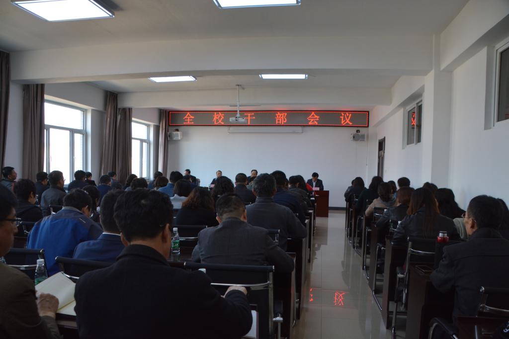 3月29日下午,学校在办公楼402会议室召开全体中层干部会议,对近期工作进行全面部署。会议由党委书记马壮主持。校长陈保东作了2018年学校工作部署。党委副书记韩劲松、副校长吴国玺、纪委书记邓献宇及全体中层干部参加了会议。