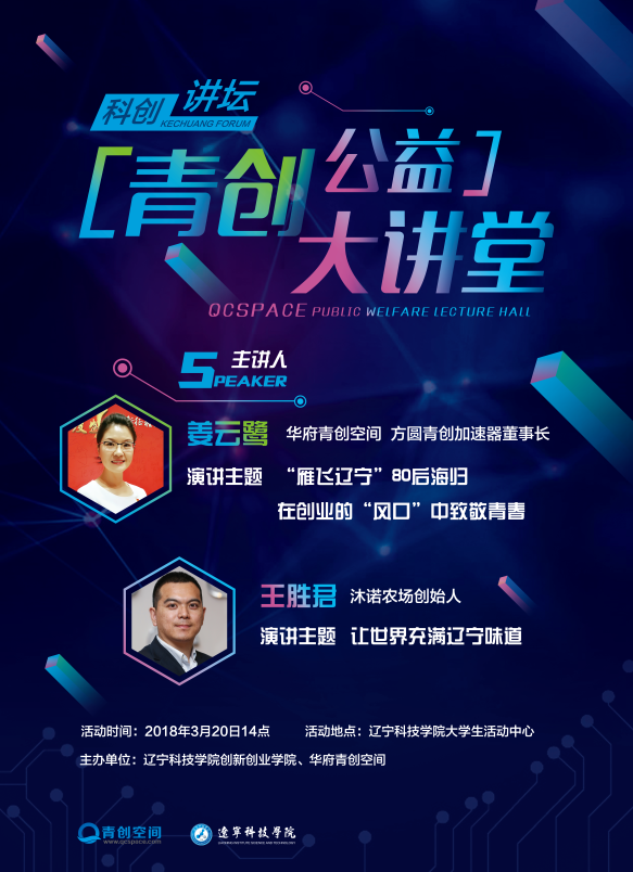 下午,华府青创空间、方圆青创加速器董事长姜云鹭为我校第五期科创讲坛做题为“雁飞辽宁”80后海归在创业的“风口”中致敬青春的主题演讲,沈阳熹诺农业科技有限公司总经理王胜君做题为让世界充满辽宁味道的主题演讲。