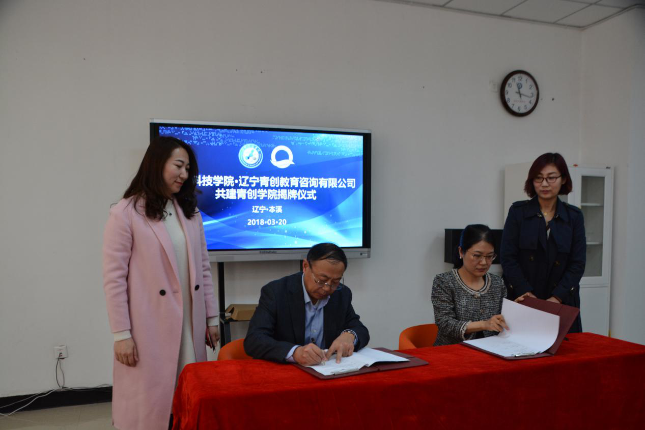3月20日上午,辽宁科技学院与辽宁青创教育咨询有限公司共建青创学院揭牌仪式在创新创业学院顺利举行。