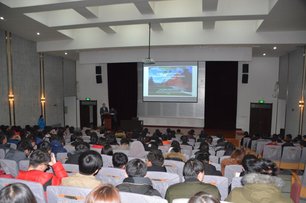 1月10日下午两点,在学术报告厅,俩位教授作了精彩的学术报告。教授们表达了来自芬兰的问候,并欢迎中国学生到芬兰攻读硕士、博士学位。Lauri Holappa教授的报告内容主要是关于降低钢铁企业二氧化碳排放的调查研究。教授首先给出了近几十年世界总二氧化碳排放情况,并表示,钢铁厂的二氧化碳排放量占其中很大比例。报告中提出了五条降低二氧化碳排放的建议,并指出,到2050年,吨钢二氧化碳排放量有望从1.8吨降低到0.5吨。Seppo Louhenkipi教授从事连铸方面的研究三十多年。这次报告教授主要介绍了他参与开发的四项连铸相关的模型软件(IDS,TEMPSIMU,CastManger和OES/PDA分析软件),模型分别可用于计算铸坯成型过程中的热物性参数、铸坯在准稳态下的温度分布、在线的(非稳态)铸坯温度分布、在进行连铸前分析直读光谱数据预测铸坯发生缺陷的可能等。
