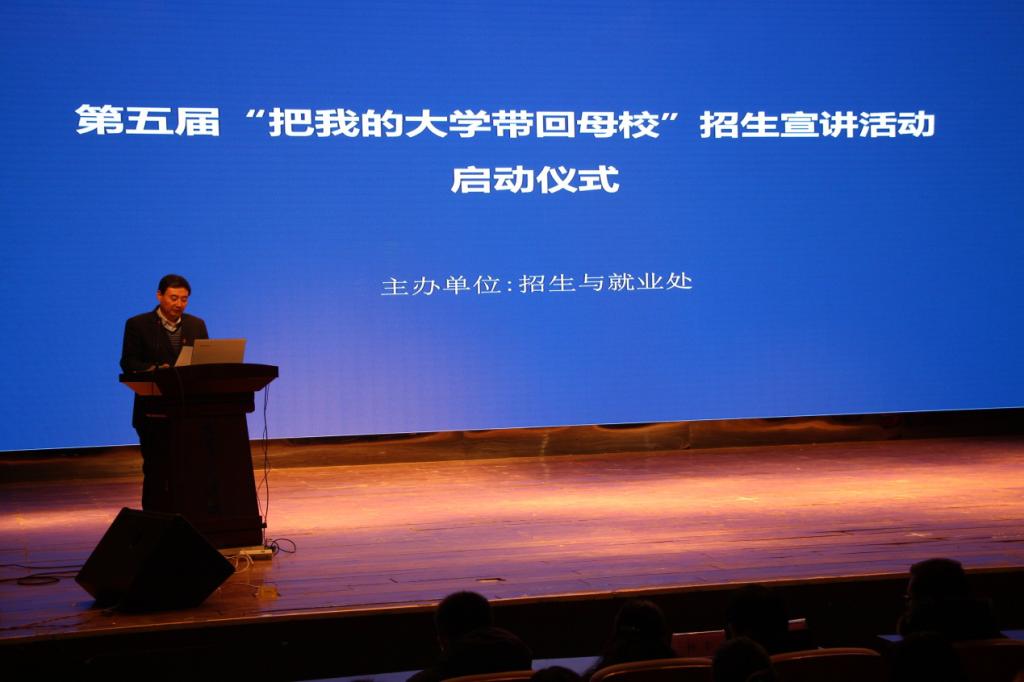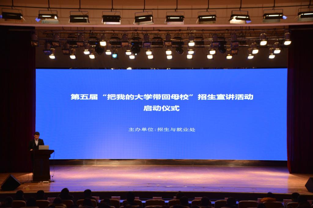 1月5日下午,我校第五届“把我的大学带回母校”招生宣讲活动启动仪式在大学生活动中心举行,各院系书记、副书记、招生就业总指导员、招生与就业处全体人员、招生宣讲团队指导教师、学生代表500余人参加启动仪式。