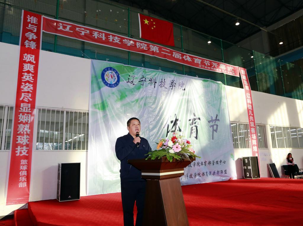 在健美操俱乐部的欢快热烈而又韵律十足的健美操表演之后,体育俱乐部管理中心主任陈庆伟宣布辽宁科技学院第二届体育节开幕并致辞,体育俱乐部联盟主席杨海涛代表学生发言。