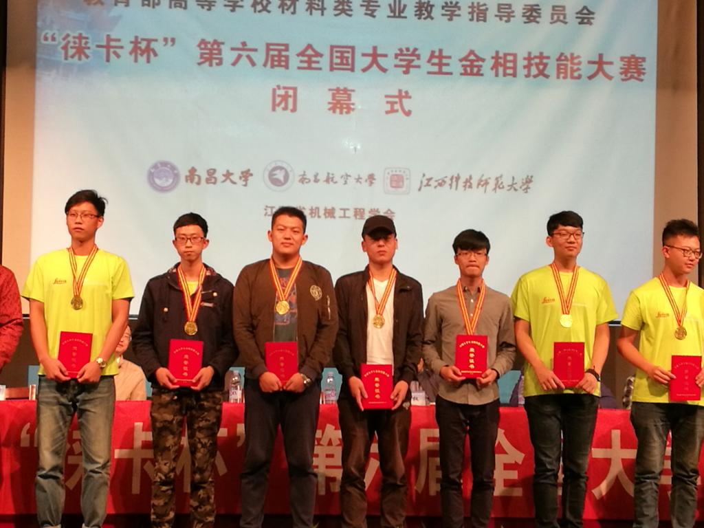 由于参赛人数较多,同时也提现比赛的公平性,大赛把比赛场地分别设在南昌大学和南昌航空大学,每名选手在复赛过程中要在两个场地磨制20钢、球墨铸铁两个试样,经过复赛两天的激烈角逐,我校参赛选手冶金BG154兰模顺利进入决赛,并在决赛中稳定发挥取得一等奖,冶金BG154魏建峰获得二等奖,材控BG142单桂君获得三等奖,带队教师郭晓影、刘冰被评为优秀指导教师。