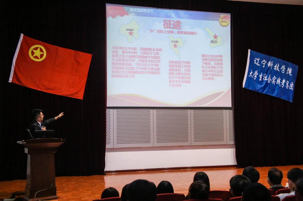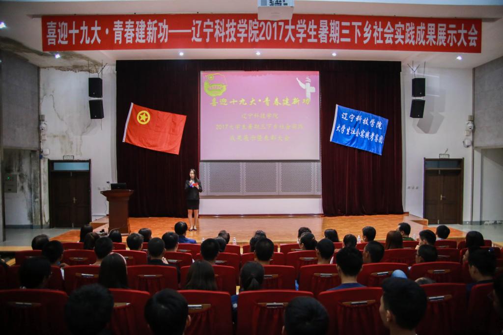 为充分展示和巩固我校暑期社会实践取得的丰硕成果,加强各实践团队之间的经验总结和交流,进一步推动我校社会实践工作的深入开展,我校于9月20日下午3时在办公楼学术报告厅成功举行“喜迎十九大,青春建新功”辽宁科技学院大学生暑期“三下乡”社会实践成果展示暨表彰大会。共青团本溪市委副书记曹中平,辽宁科技学院党委副书记韩劲松,党委宣传部副部长宋万刚,思政部主任张春枝,各二级学院学生书记、副书记、分团委书记和校团委全体成员莅临大会现场,各院系学生骨干以及各班团支书300余人参加了本次大会。