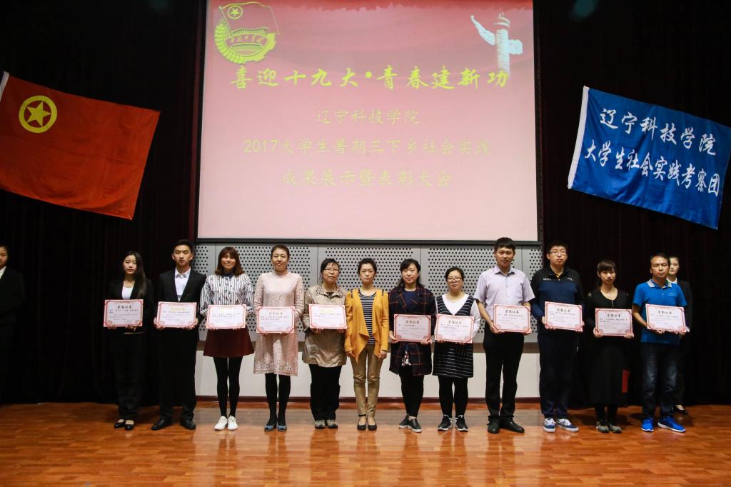 大会首先播放了《2017辽宁科技学院暑期社会实践活动精彩回顾》,通过视频系统介绍了我校2017大学生暑期社会实践活动的总体情况和取得的成果。我校根据上级团组织的文件精神,积极响应号召开展了以“喜迎十九大·青春建新功”为主题,以“受教育、长才干、做贡献”为目的,坚持社会实践与社会考察、志愿服务、专业学习、就业创业有机结合方式开展了一系列的暑期三下乡活动,各院系、各团队根据申报项目,精心策划,周密安排,师生共参与,共建立校级以上团队28支,其他各级团队100余支,总计参加集体实践团队学生人数达2000余人,分散式社会实践基本实现了在校生的全覆盖。各社会实践团队奔赴广大农村、社区、学校和企业,深入开展了政策宣讲、青年规划、田野调查、科技支农、教育帮扶、关爱留守儿童、敬老助残、文化宣传、法律援助、环境保护等形式多样的实践服务活动,足迹遍布辽宁省14个市以及贵州省、山西省、江苏省、吉林省、内蒙古、新疆等省自治区的部分地区,社会实践活动曾在全国“三下乡”官网、中国青年报·中青在线、中国青年网、新华网、中国国土空间规划网、朝阳网、微信本溪日报等多个媒体报道宣传,受到了社会各界普遍好评,社会影响广泛。