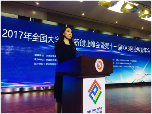 创新创业学院负责人韩娇代表学校做主题演讲