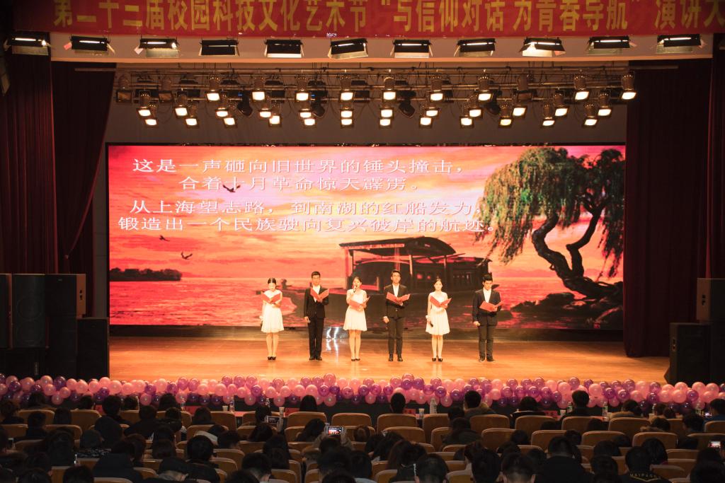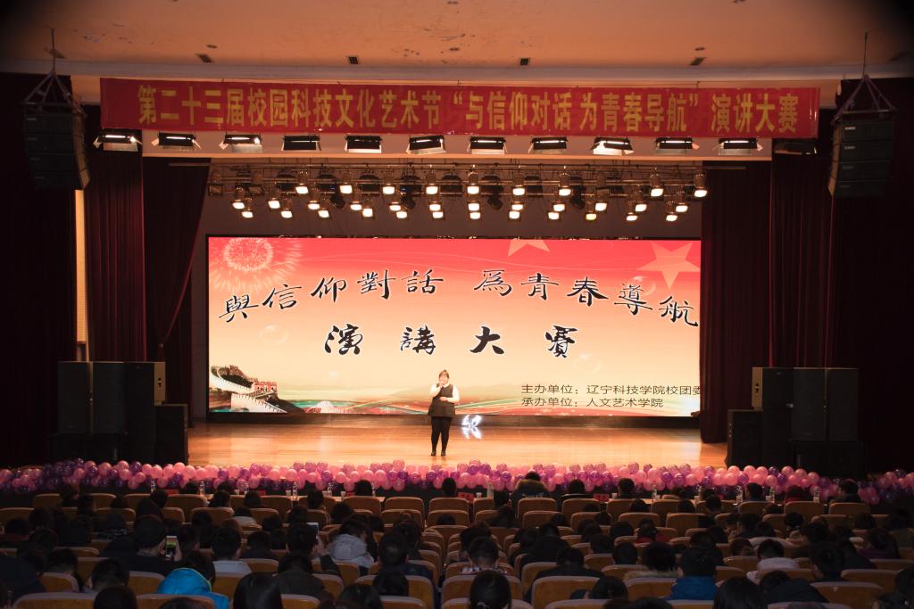 为学习贯彻党的十八届六中全会精神以及学习习近平总书记系列重要讲话精神,引导大学生全面发展,在辽宁科技学院第二十三届校园科技文化艺术节之际,由校团委主办、人文艺术学院承办“与信仰对话,为青春导航”主题演讲大赛决赛于12月15日下午在大学生活动中心隆重举行。700余名师生观看了本次大赛。