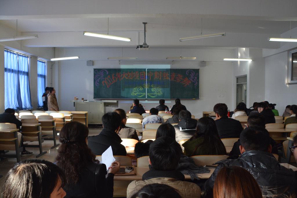 12月15日下午,学校对2016年109项各级大学生创新创业训练计划项目开展中期检查,检查分四组,在B3211、B3309、B3310、B3311同时举行。