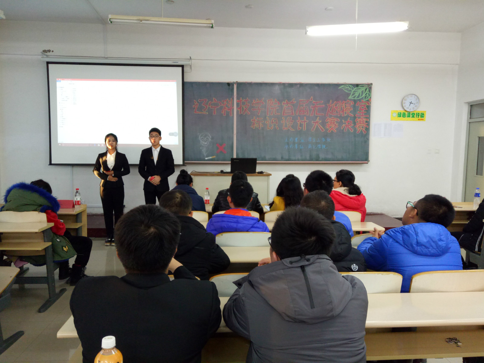 11月29日,由学生工作处主办,药化学院承办的“无烟寝室”标识设计大赛决赛在B3-411教室举行。学生工作处、团委、各院系辅导员老师出席了本次大赛。