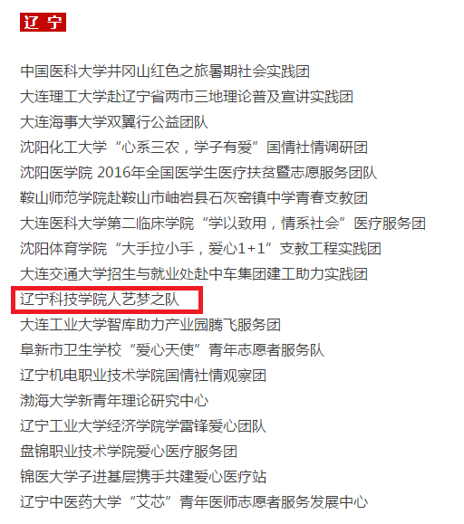 辽宁科技学院人艺梦之队获得全国社会实践优秀团队,辽宁省入选了18个优秀团队