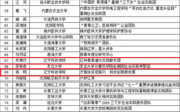 资土学院的苏禹竹、机械学院的陈明两名同学获得实践组织带头人荣誉称号,辽宁省共入选12人
