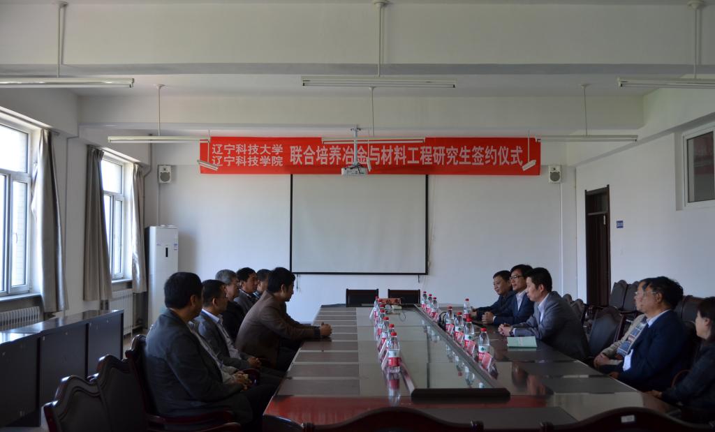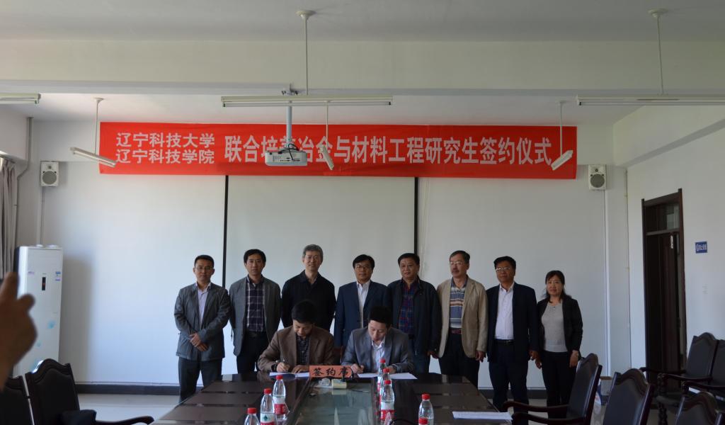 5月16日上午,辽宁科技学院——辽宁科技大学联合培养冶金与材料工程研究生签约仪式成功举行。我校副校长吴国玺、科技处处长孙国军、冶金工程学院院长陈韧、党总支书记马贺利、辽宁科技大学研究生学院院长陈雪涛、材料与冶金学院院长李胜利、研究生院副院长李激光、材料与冶金学院副院长何志军、材料与冶金学院实验中心主任王洪斌出席此次签约仪式。
