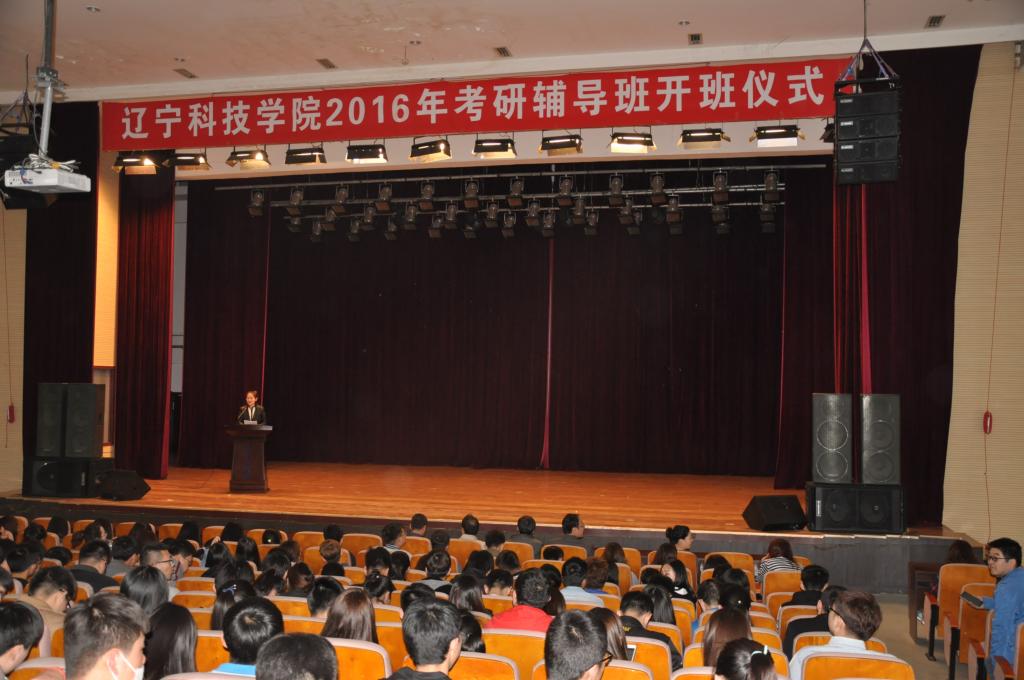 4月26日下午,辽宁科技学院2016年考研辅导班开班仪式在艺术楼大学生活动中心成功举行。党委副书记韩劲松出席了本次开班仪式,外语系孙庆龙书记、基础部王洪岩副主任、考研辅导班授课老师、班主任老师、学生工作处工作人员和2016年考研辅导班全体学生参加了此次开班仪式。