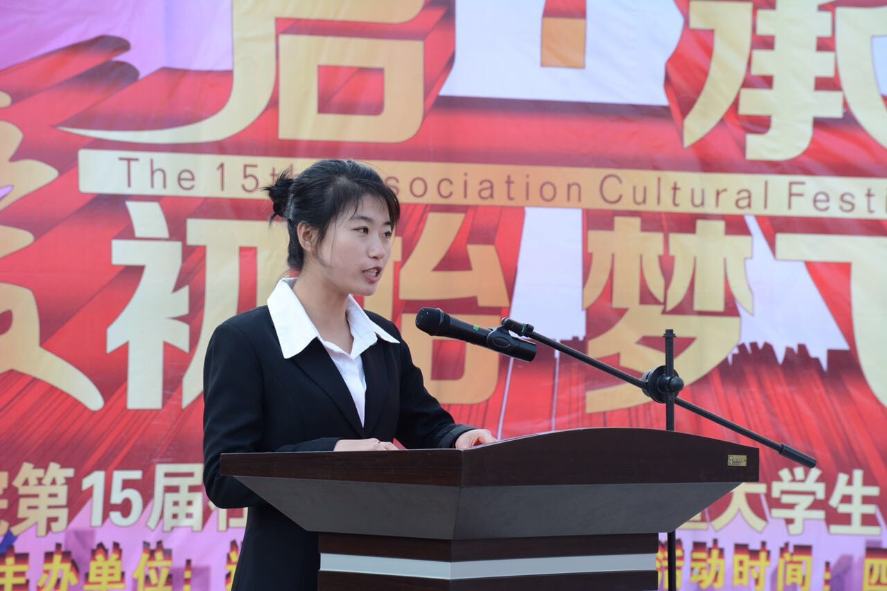 下午3时30纷,开幕式正式开始。首先,我校团委书记唐梅致开幕词。 随后,辽宁省创客英雄冠军刘忆然,社团联合会主席贾明宇先后上台发言。最后由贾明宇带领社联全体学生干部上台宣誓,表达了他们“全心全意为同学服务,打造精品社团文化,塑造有爱有创新的社团人”的决心和信念。