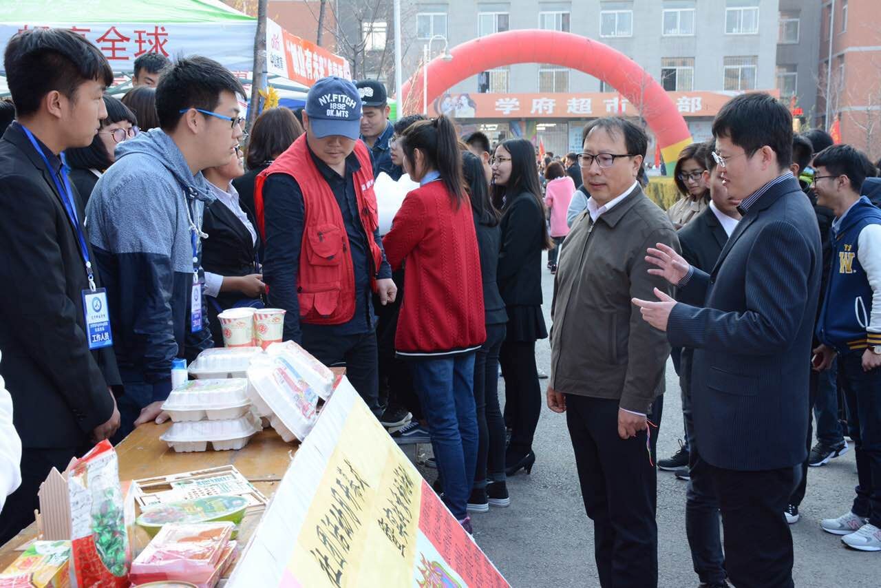 参观过程中,各嘉宾分别亲切的与各社团学生以及各卖场的同学们进行交谈和互动,关心着大学生们的社团发展现状以及创业中遇到的问题,让同学们倍感激动。参观结束后,王大可部长对我校开展的本次活动给予了充分肯定和高度评价,赞扬了同学们的自主创业精神和踏实肯干的品质,并鼓励同学们在售卖过程中积极展示风采,在实战中锻炼才能。