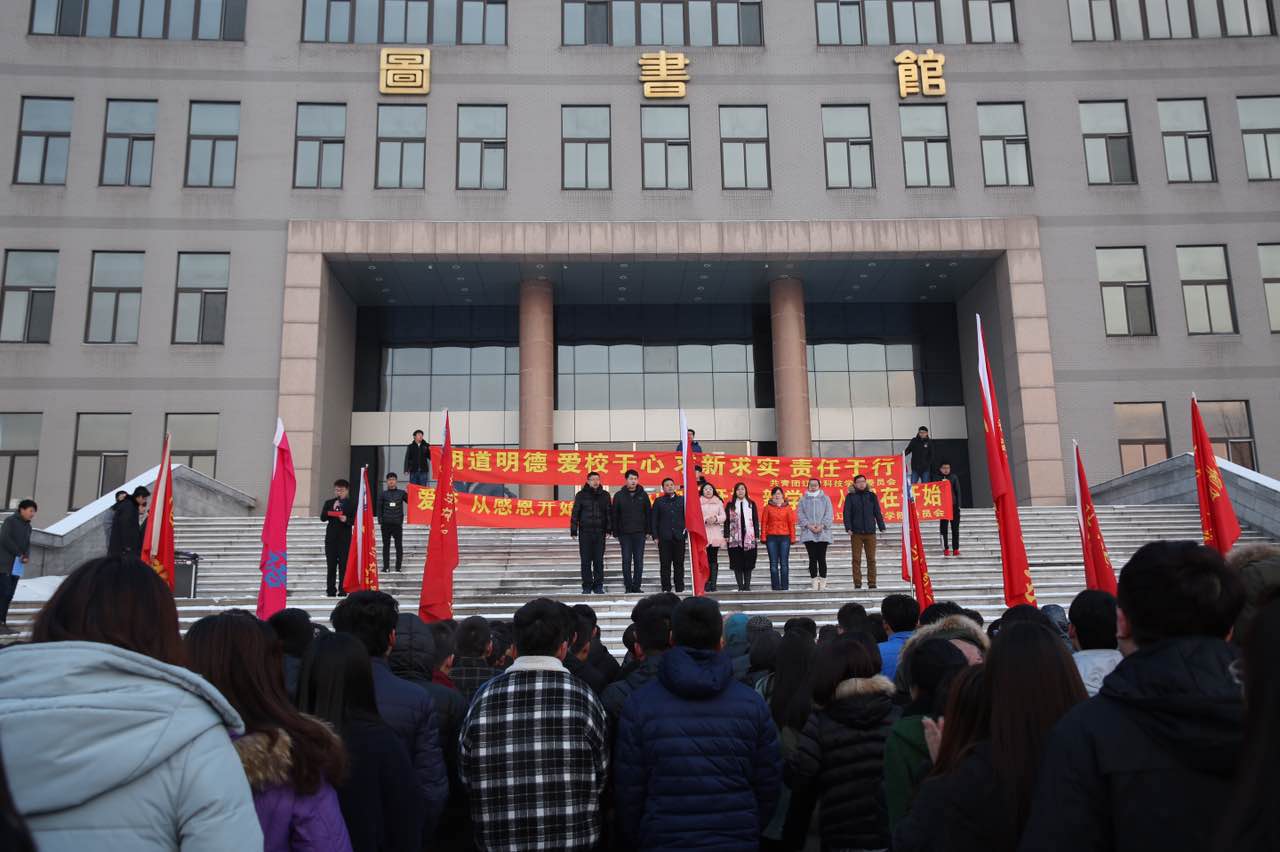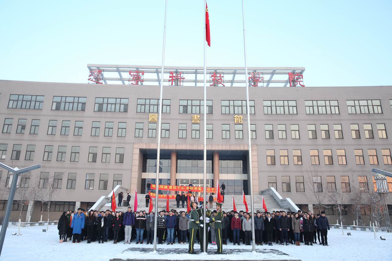 2月29日早晨6点40分,在雪白如画的魅力校园里,在庄严雄壮的国歌声中,鲜艳的五星红旗迎着晨风冉冉升起,校团委全体成员、院系分团委书记代表及近400名学生代表集体肃立在书韵广场,庄严地向国旗行注目礼,形成了开学第一天,辽宁科技学院最亮丽的一道风景。