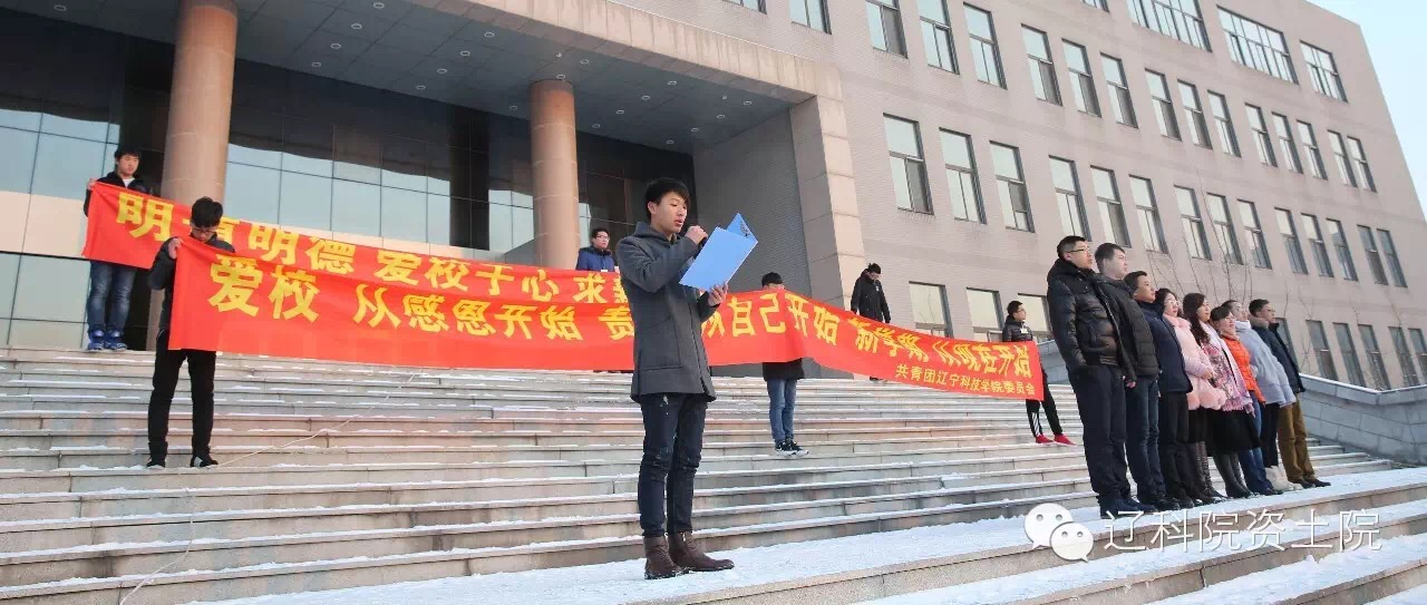 学生代表王宇在庄严的国旗下也激情演讲:"身为当代青年的我们,就应该清楚时代赋予我们的历史使命。当我们生活在辽宁科技学院,汲取知识,磨炼技能,就应该爱护无私奉献的母校。"他代表所有学生立下誓言,作为辽科学子要挺起时代的脊梁。将用坚实的责任心。承担起对自己的责任,对亲人,对他人的责任,对社会的责任,对祖国、民族与世界的责任。同时也表达了感恩父母,感恩老师,感恩学校,感恩生活,感恩世间的种种美好的感恩之心。最后,本次升旗仪式在同学们“明道明德、爱校于心、求新求实、责任于行”整齐的响亮的口号声中圆满结束。