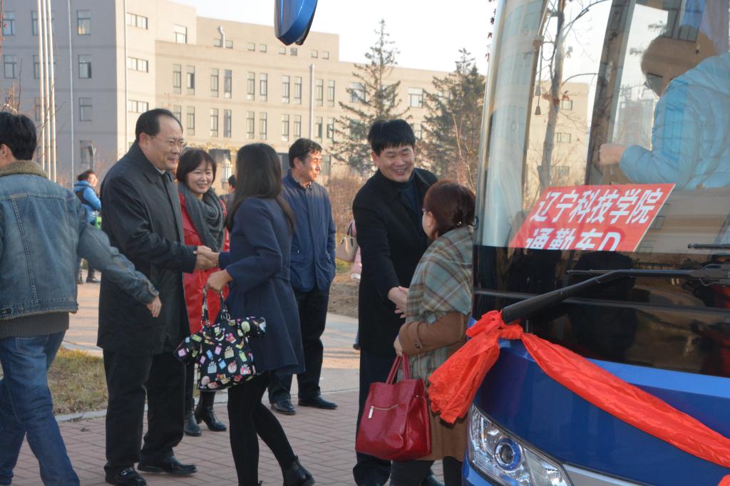 11月17日早,伴着晨曦,四辆缠系大红绸带、车身印有 “辽宁科技学院”字样的大客车缓缓驶入校门,成为我校历史上第一批正式投入使用的通勤校车。党委书记赵文珍、校长马壮亲自迎接,副校长丛树林亲自乘坐校车上班,与我校教职工一同分享首次乘坐自家通勤车的喜悦。