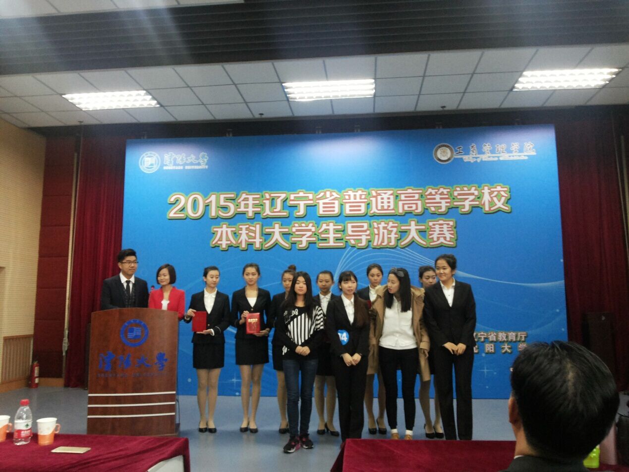 10月30日-31日,由辽宁省教育厅、辽宁省财政厅共同主办,沈阳大学承办,辽宁省旅游教育中心协办的2015年辽宁省普通高等学校第一届本科大学生导游大赛在沈阳大学举行。经过两天激烈角逐,我校管理学院旅游管理专业的学生在大赛中取得佳绩。其中,由孙建竹老师指导的旅游BG13级学生杨雨佳荣获普通话组导游大赛二等奖,陆慧老师和李云龙老师指导的旅游BG13级学生舒莹和关铭诗分别荣获普通话组和英语组导游大赛三等奖,此外,关铭诗同学还获得最佳才艺奖。